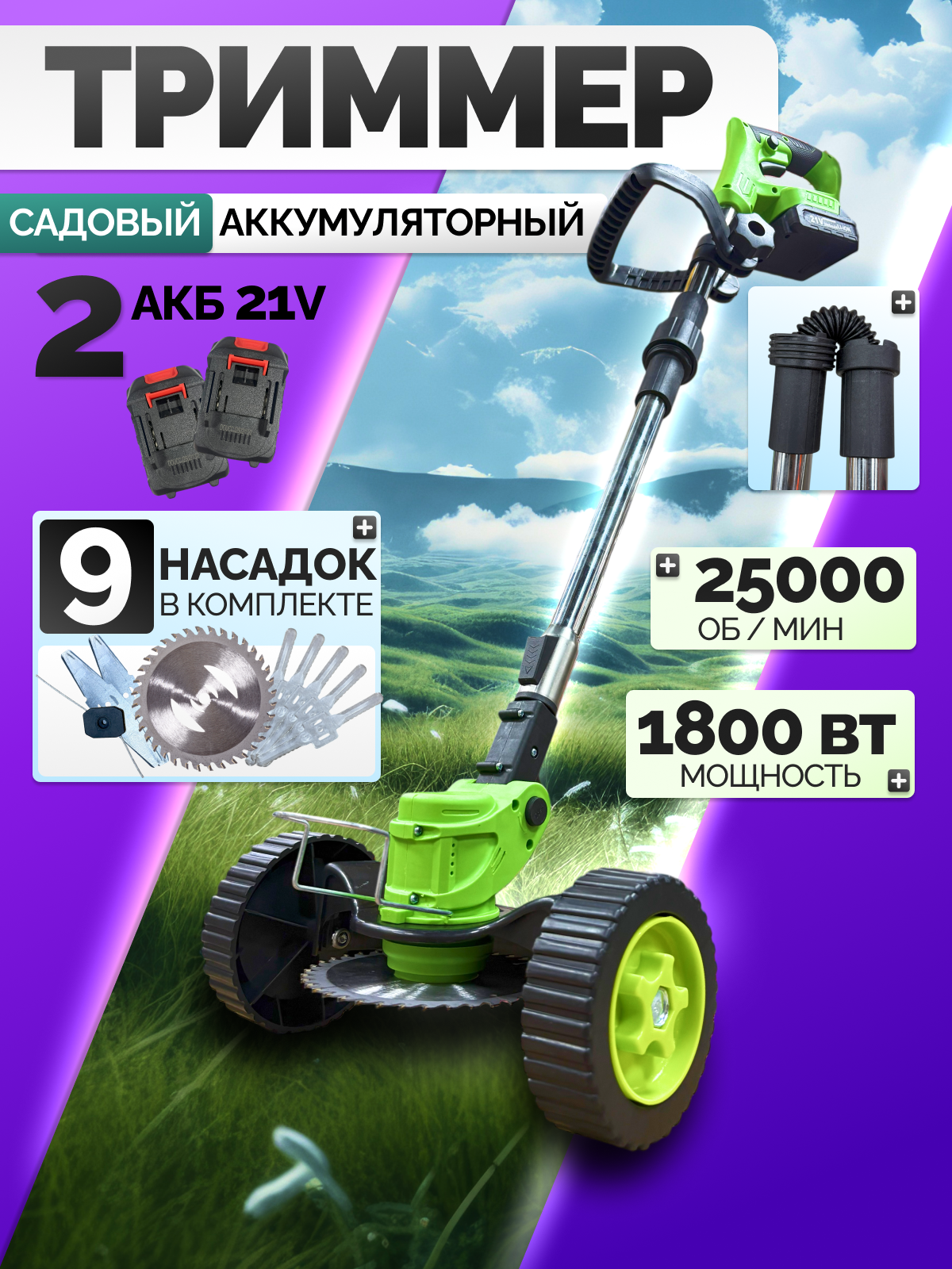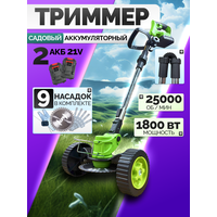 Купить Триммер аккумуляторный садовый на колёсах складная штанга (1800 Вт, два аккумулятора Li-ion) газонокосилка с доставкой по всей России. Триммер аккумуляторный садовый на колёсах складная штанга (1800 Вт, два аккумулятора Li-ion) газонокосилка: сравнение цен, характеристики, фото, актуальное наличие и цены.