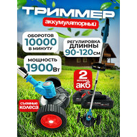 Купить Триммер аккумуляторный садовый с колёсами, газонокосилка мощная с двумя аккумуляторами беспроводная с доставкой по всей России.