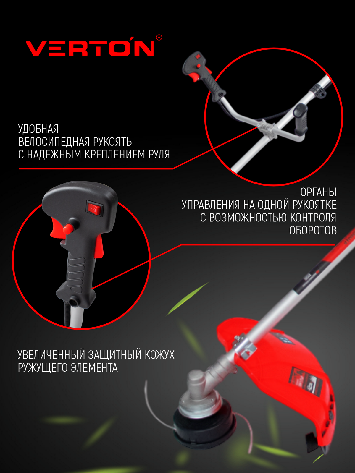 | Подробная комплектация | • 3-зубый нож • Катушка из качественного пластика, d лески до 2,4 мм. • Набор инструмента для сборки • Наплечный ремень |