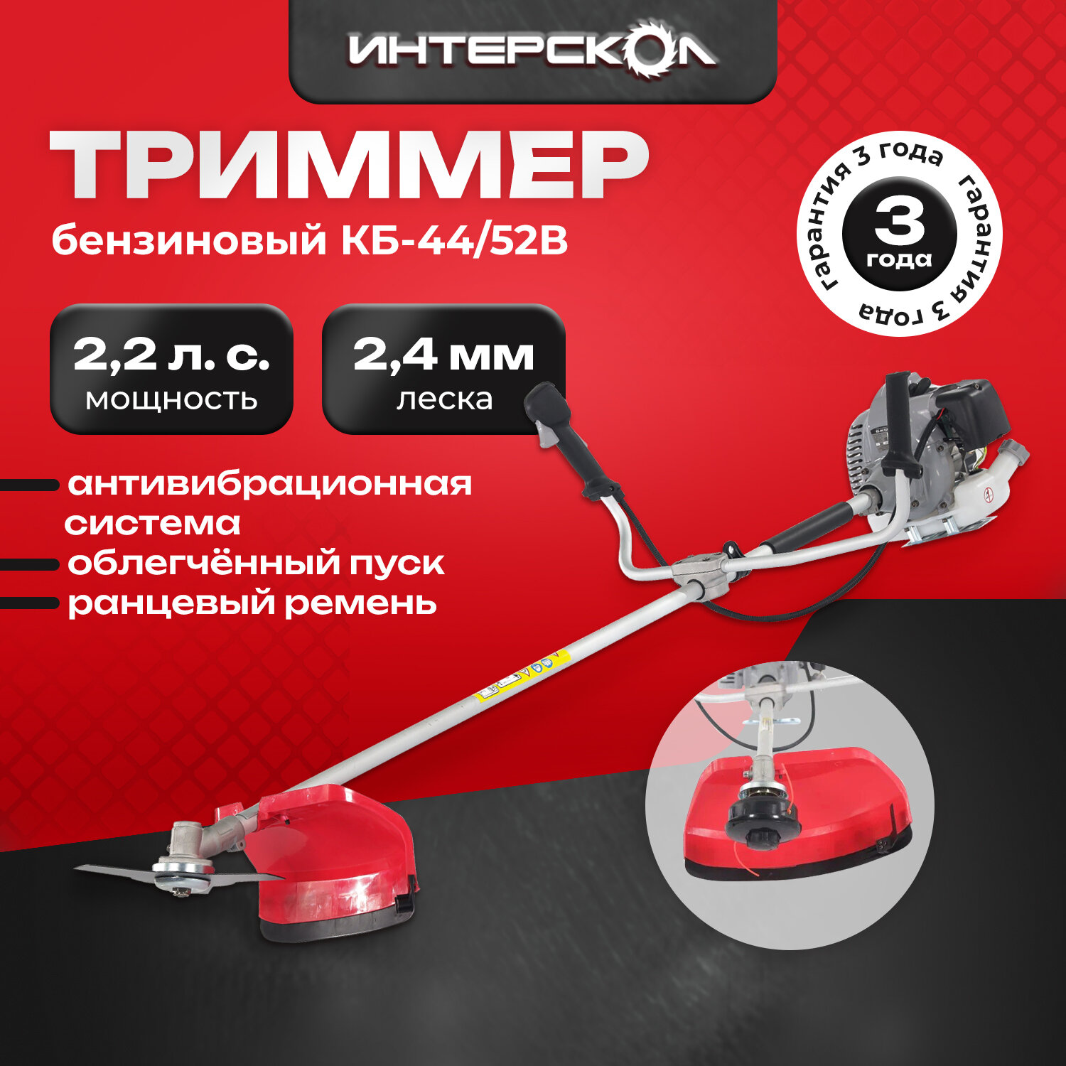 | Подробная комплектация | Кусторез бензиномоторный 1 Инструкция по безопасности и Руководство по эксплуатации 1 Гарантийный талон 1 Рукоятка двухсоставная велосипедного типа 1 Нож трёхлопастный 1 Комплект крепежа для ножа 1 Кожух защитный ножа 1 Комплект крепежа кожуха защитного 1 Головка режущая с леской 1 Двухплечевой ремень ранцевого типа 1 Набор инструмента для обслуживания 1 |