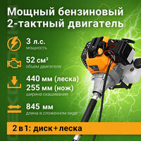 Триммер бензиновый DEKO DKTR52 SET 7, леска/диск предназначен для скашивания травы на приусадебных и частных садовых участках. "Велосипедная" рукоятка позволяет легко управлять триммером, а блокиратор курка газа предотвращает случайный запуск. Телескопическая рукоятка позволит настроить удобную высоту устройства.