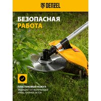 Бензокоса Denzel DTL-43 — идеальный выбор для работы на даче, в саду или на участке без электроснабжения. Подходит как для регулярного ухода за территорией, так и для борьбы с зарослями. Совместим с дополнительными пильными дисками Denzel 96323, 96325, 96328.