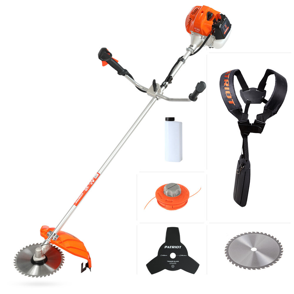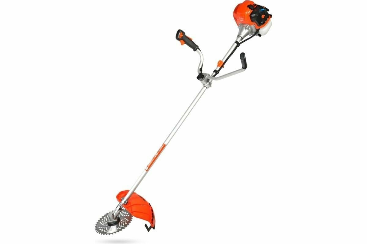| Подробная комплектация | Триммерная головка (полуавтомат); 3-лопастной нож; Диск; Плечевой ремень; Ёмкость для приготовления топливной смеси; Защитный кожух. |