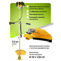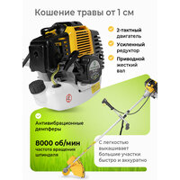 | Подробная комплектация | Бензотриммер, катушка, 3-лопастной диск, ёмкость для смешивания топливной смеси, плечевой ремень |