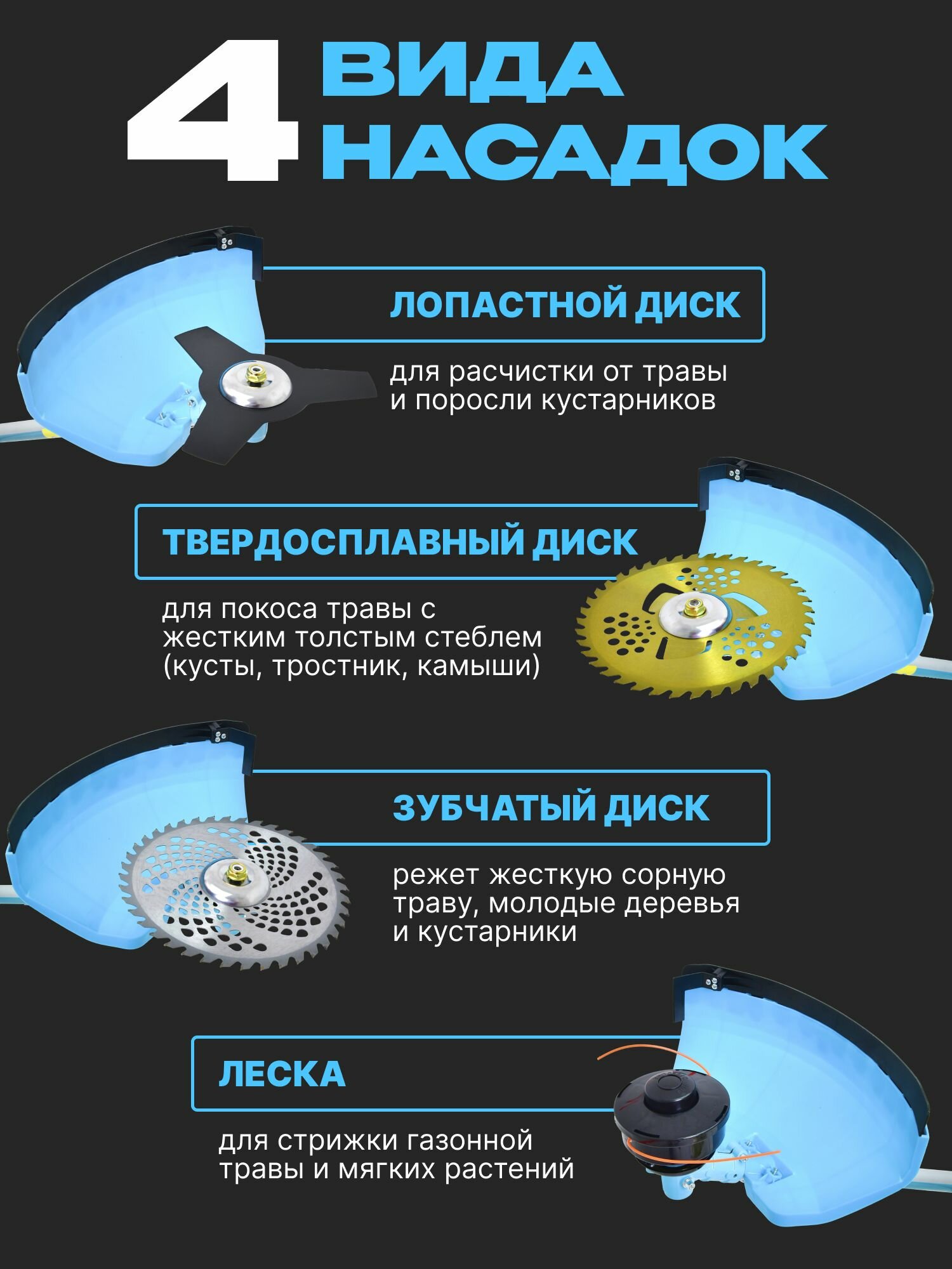 | Подробная комплектация | Бензиновый триммер - 1 шт Нож 3Т - 1 шт Нож 40Т - 1 шт Катушка под леску - 1 шт Емкость для топливной смеси - 1 шт Наплечный ремень - 1 шт Набор инструментов - 1 шт Защитный кожух - 1 шт |