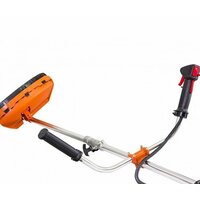 Объём двигателя: 32.5 смᵌ Мощность двигателя л. с: 2.0 л. с. / 1.47 кВт Макс. число оборотов: 8500 об/мин Тип двигателя: 2-х тактный бензиновый с воздушным охлаждением Тип топлива: смесь бензина АИ — 92 (неэтилированного) с маслом для 2-х тактных двигателей 1:40 Диаметр ножа: 230 мм Диаметр лески: 2.0-3.0 мм Ширина захвата Леска: 440 мм Нож: 230 м Приводной вал: жесткий Тип штанги: разборная Тип рукоятки: U-образная Объем топливного бака: 0.9 л Вес (брутто/нетто): 8.2 / 6.5 кг Комплектация: плечевой ремень; 3х-лучвой нож; головка с леской М10 1:25; Т-образный свечной ключ; емкость для топливной смеси