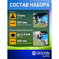 | Дополнительная информация | диаметр лезвия: 255мм (3 ножа); возможна замена режущей системы без использования инструментов |