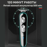 Автономная работа: Работает от собственного аккумулятора, что делает его удобным и независимым в использовании. Полная зарядка занимает всего 1,5 часа, а непрерывная работа — до 120 минут. Вы всегда будете готовы к стрижке в нужный момент.