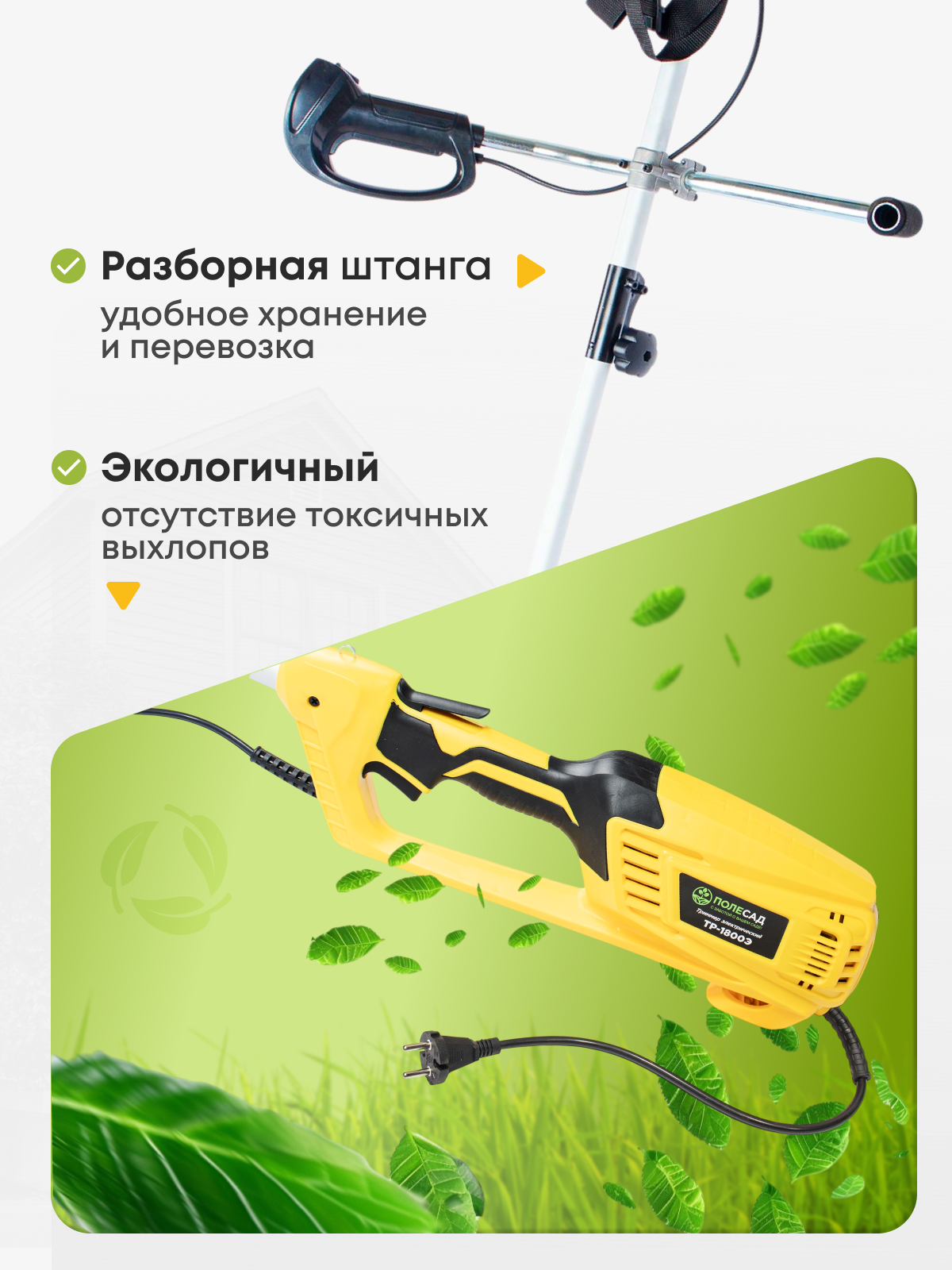 Триммер электрический полесад ТР-1800Э (1800 Вт, ширина скашивания 42 см, леска, нож, плечевой ремень): сравнение цен, характеристики, фото, актуальное наличие и цены.