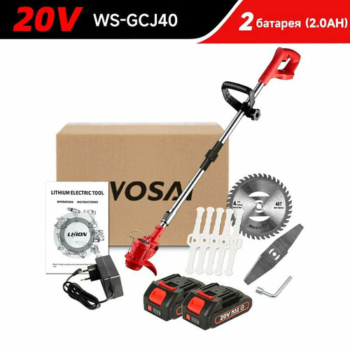 | Подробная комплектация | 1* Газонокосилка , 2* аккумуляторные батареи 20В (2.0AH) , 1* зарядное устройство, 5* пластиковый триммерный нож, 1* металлический прямой нож, 1* металлический круглый нож, 1* упаковочная коробка |