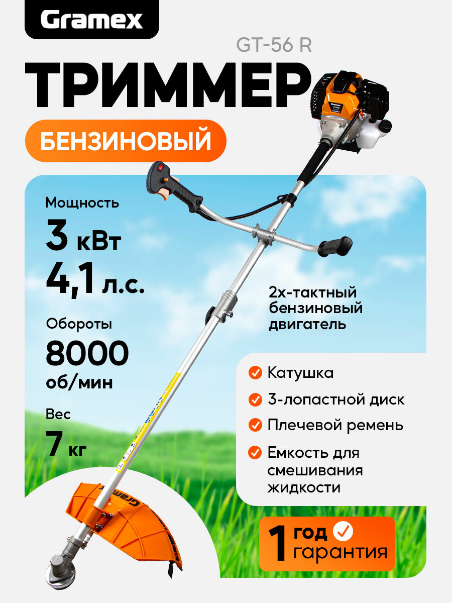 Купить Триммер Gramex GT-56, бензиновый, с катушкой и ножом, захват 25,5, 42 см с доставкой по всей России. Триммер Gramex GT-56, бензиновый, с катушкой и ножом, захват 25,5, 42 см: сравнение цен, характеристики, фото, актуальное наличие и цены.