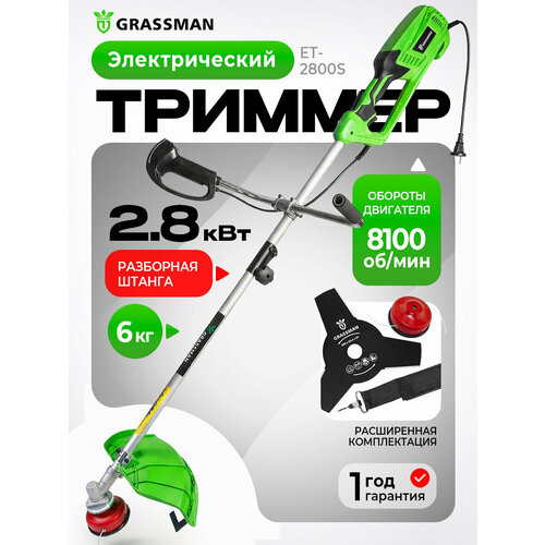 Триммер GRASSMAN ET-2800S - это электрический садовый инструмент, который обеспечивает высокую производительность и удобство использования. Мощность двигателя составляет 2800 Вт, что позволяет триммеру справляться с самыми сложными задачами. Ширина скашивания составляет 42 см, что обеспечивает быстрое и эффективное удаление травы. Конструкция триммера предусматривает разборную штангу, что облегчает транспортировку и хранение. Форма рукоятки U-образная, что обеспечивает комфортное и надежное удержание инструмента во время работы. Триммер оснащен леской и ножом в качестве режущих элементов. Толщина лески составляет 2,4 мм, что гарантирует аккуратный и чистый срез. Защита от перегрева обеспечивает долгий срок службы триммера и предотвращает его перегрев во время интенсивной работы. В комплект поставки входят: катушка с леской, защитный щиток, нож-ограничитель длины лески, редуктор, основная рукоятка, U-образная рукоятка управления, наплечный ремень, торцевой ключ с отверткой, шестигранный ключ, 3х-лопастной нож, одинарный наплечный ремень и торцевой ключ с отверткой. Напряжение питания составляет 230 В/50 Гц, приводной вал жесткий, а тип двигателя щеточный. Частота вращения составляет 8100±300 об/мин, что обеспечивает высокую производительность. Триммер GRASSMAN ET-2800S - это надежный и мощный инструмент, который станет незаменимым помощником в уходе за вашим садом.
