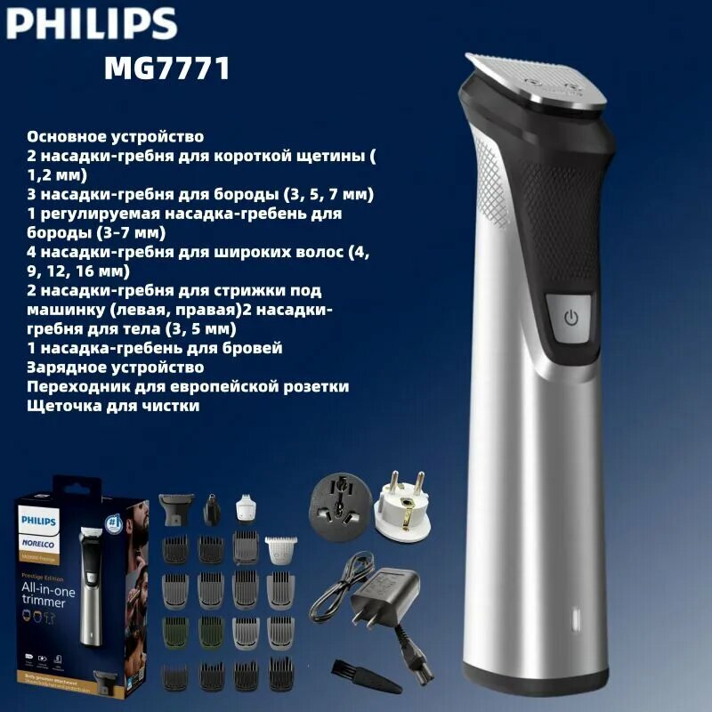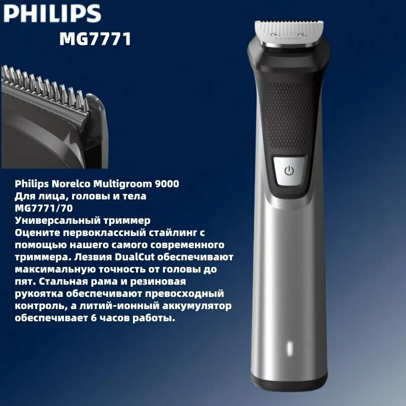 KNOW EASY-Philips Триммер для бороды и усов Универсальный триммер Philips MG7771 DualCut для ухода за бородой, волосами и телом, серый/темно-серый, кол-во насадок 19: сравнение цен, характеристики, фото, актуальное наличие и цены.