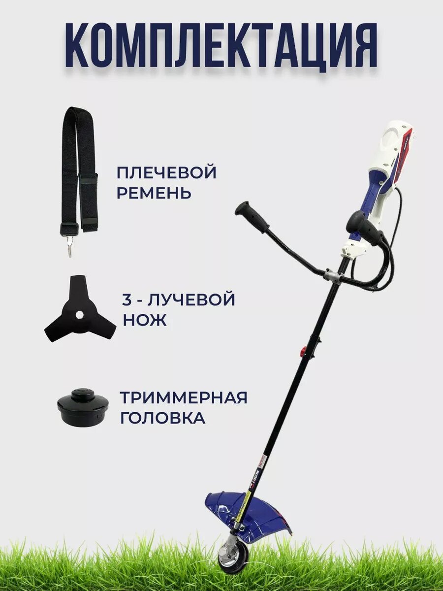 | Подробная комплектация | нож, ремень наплечный, триммер электрический, катушка, упаковка |