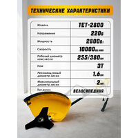 Триммер садовый TET-2800, электрический, велосипедная ручка, 2800 Вт, 10 000 оборотов
