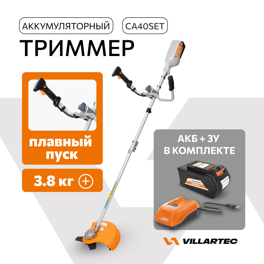Купить Триммер садовый VILLARTEC, аккумуляторный, 40В, с аккумулятором 5Ач и зарядным устройством с доставкой по всей России.