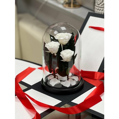 Купить Трио «Мини» белые розы в колбе в подарочной коробкой с вау-эффектом /22 см Живет 5 лет с доставкой по всей России.