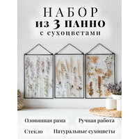 Купить Триптих Сет из 3 панно на стену с сухоцветами Бежевые травы «Forget-me-not» / 20*30 см каждая рама / черная рама с доставкой по всей России.
