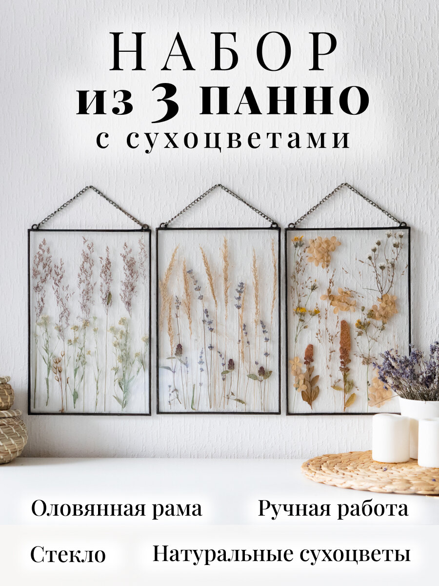 Триптих Сет из 3 панно на стену с сухоцветами Бежевые травы «Forget-me-not» / 20*30 см каждая рама / черная рама: сравнение цен, характеристики, фото, актуальное наличие и цены.