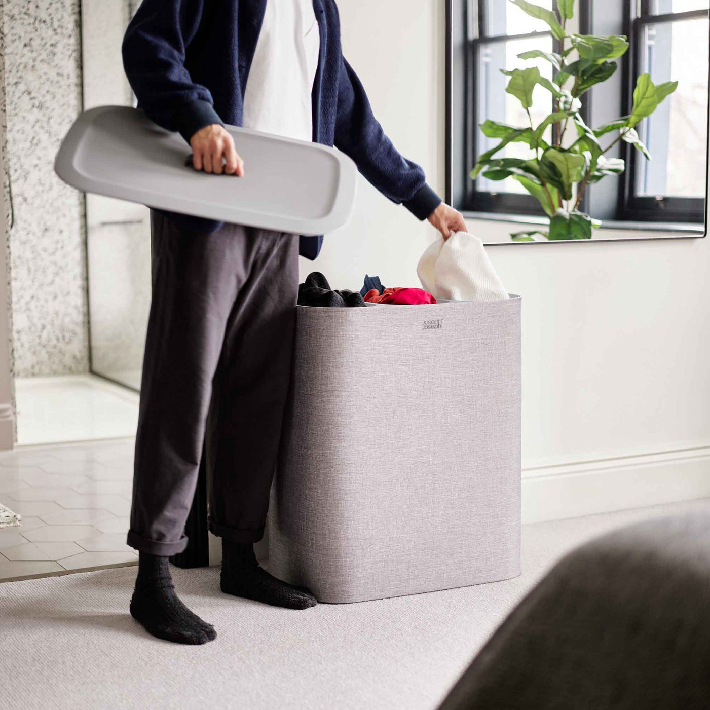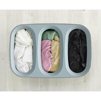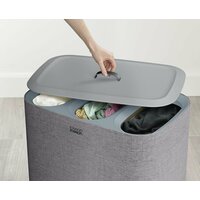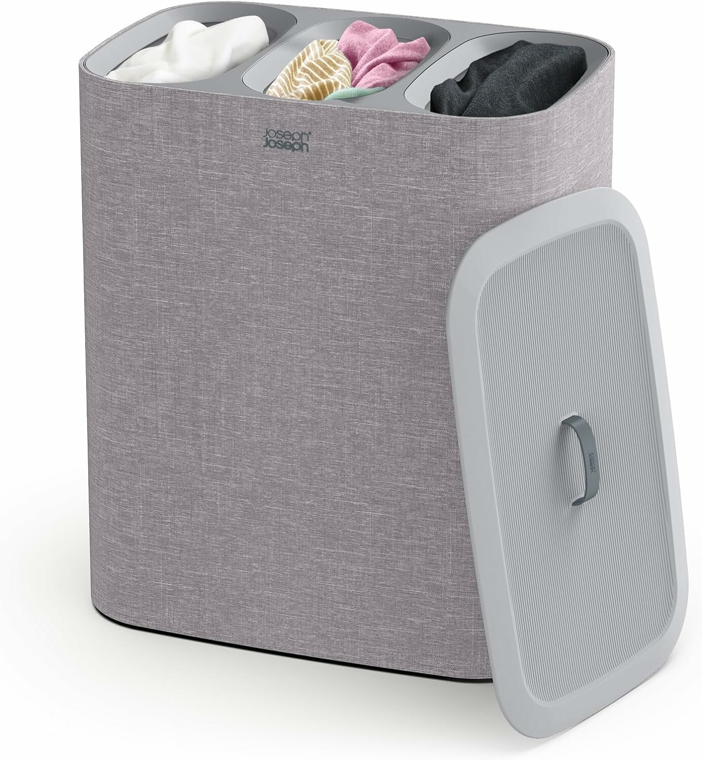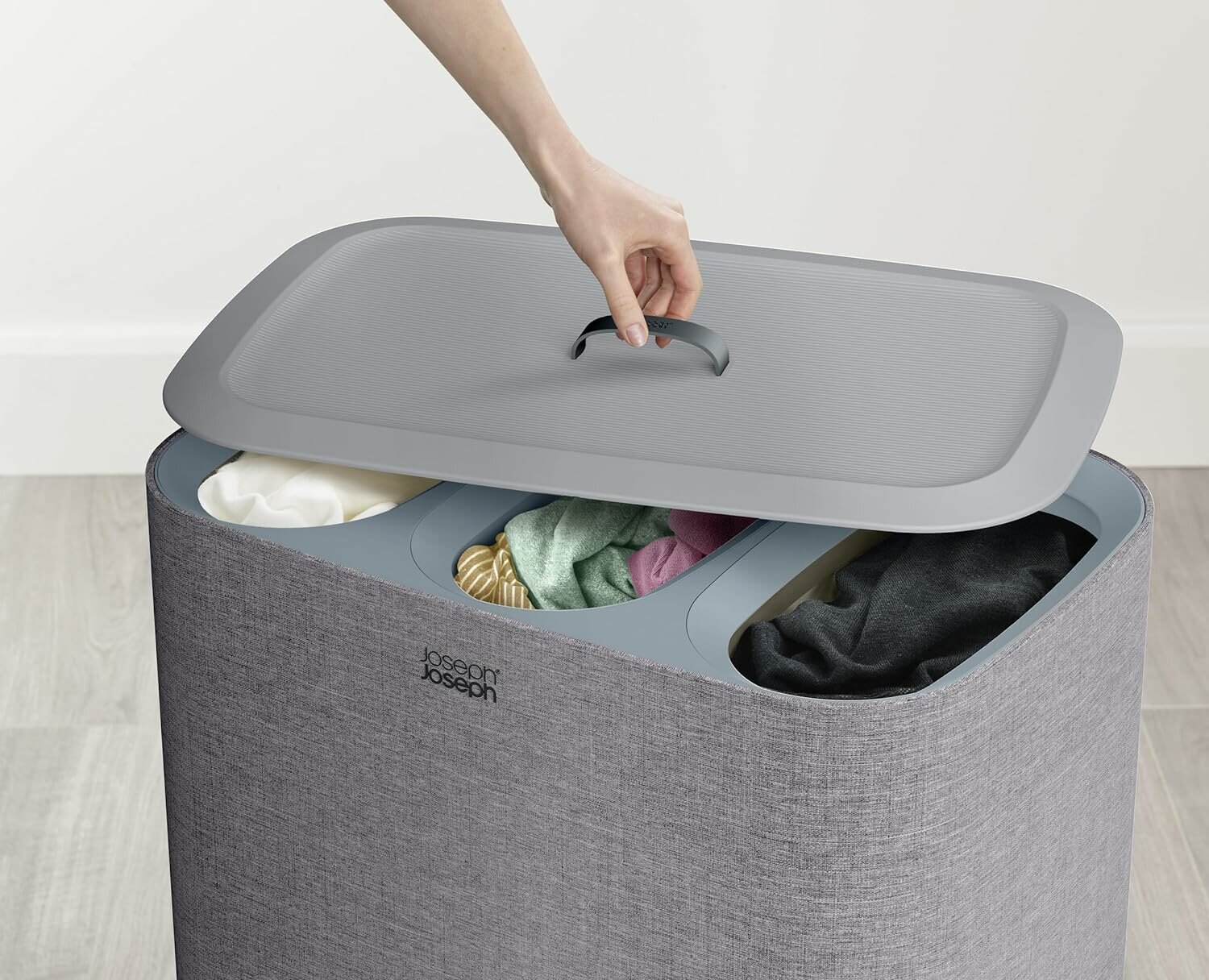 Самая популярная корзина для белья от бренда Joseph Joseph – модель Tota – стала еще более удобной! Теперь три отделения для удобной сортировки грязного белья и легкого переноса большого объема к стиральной машине.