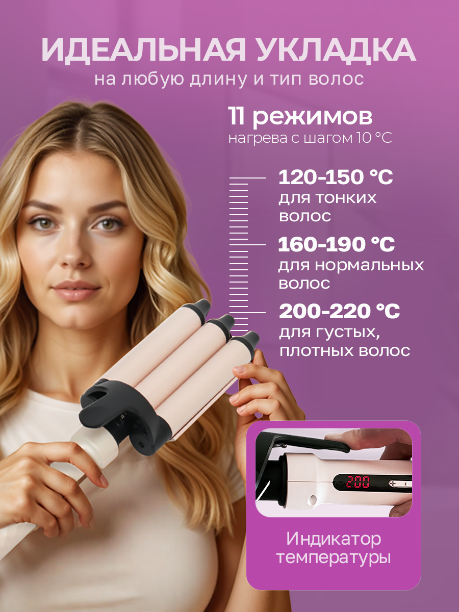 Тройная плойка с керамическим покрытием для завивки и укладки волос Catvil: сравнение цен, характеристики, фото, актуальное наличие и цены.