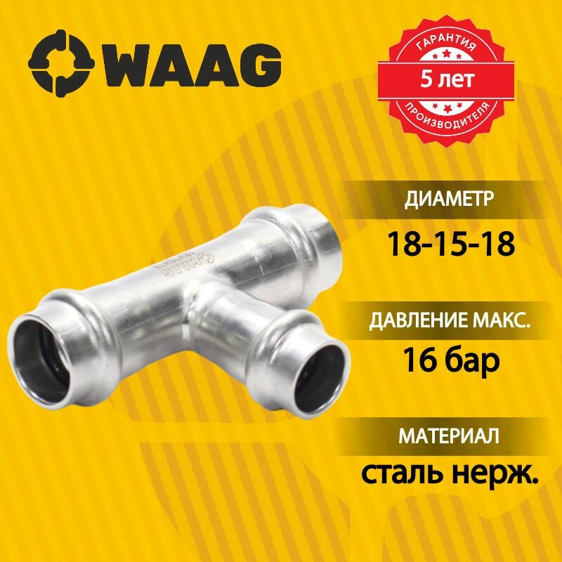 Тройник 18-15-18, WAAG Heavy Inox, пресс-пресс, сталь нержавеющая, 10 штук: сравнение цен, характеристики, фото, актуальное наличие и цены.