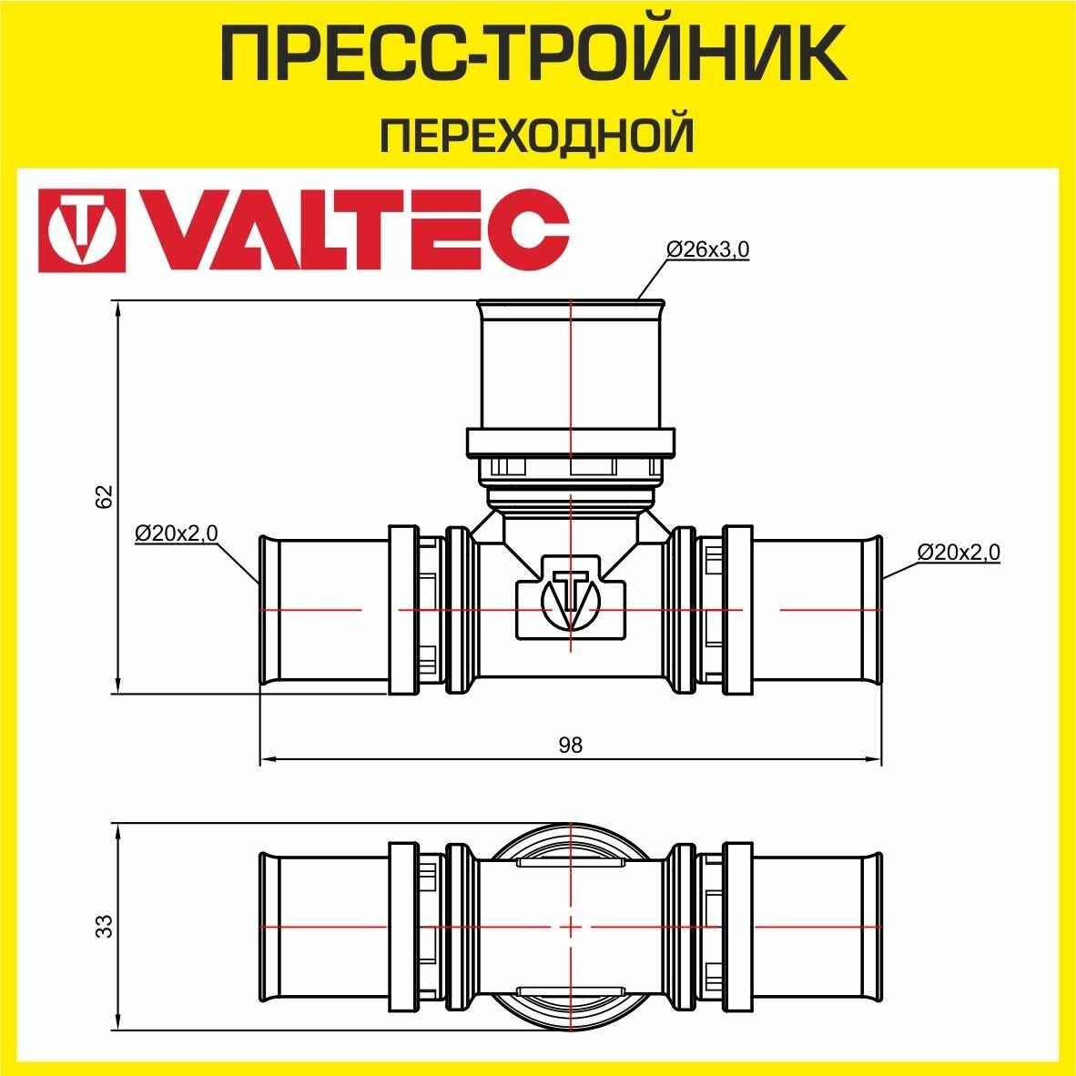 Тройник 20х26х20 мм VALTEC для труб 26(3,0), 20(2,0), арт. VTm.231. N.202620: сравнение цен, характеристики, фото, актуальное наличие и цены.