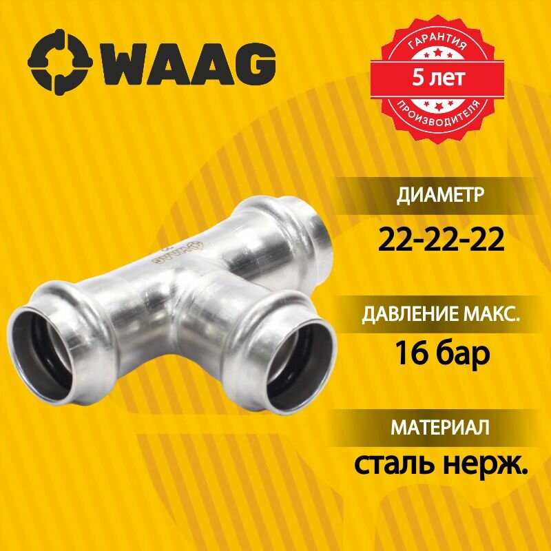 Тройник 22-22-22, WAAG Heavy Inox, пресс-пресс, сталь нержавеющая, 10 штук: сравнение цен, характеристики, фото, актуальное наличие и цены.