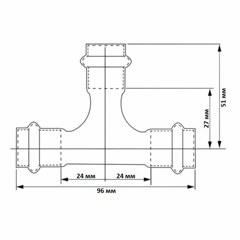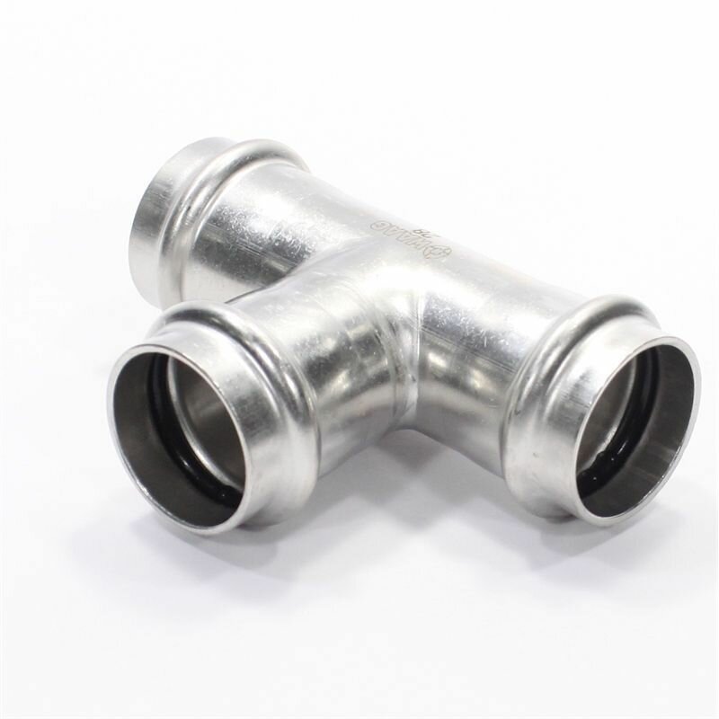Трехраструбный пресс-тройник из нержавеющей стали обеспечивает соединение трех тонкостенных стальных труб систем водоснабжения, отопления, иных инженерных и технологических установок с рабочей температурой до 120 °С и давлением до 16 бар.
