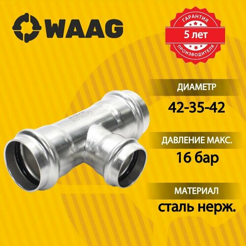 Тройник 42-35-42, WAAG Heavy Inox, пресс-пресс, сталь нержавеющая, 15 штук: сравнение цен, характеристики, фото, актуальное наличие и цены.