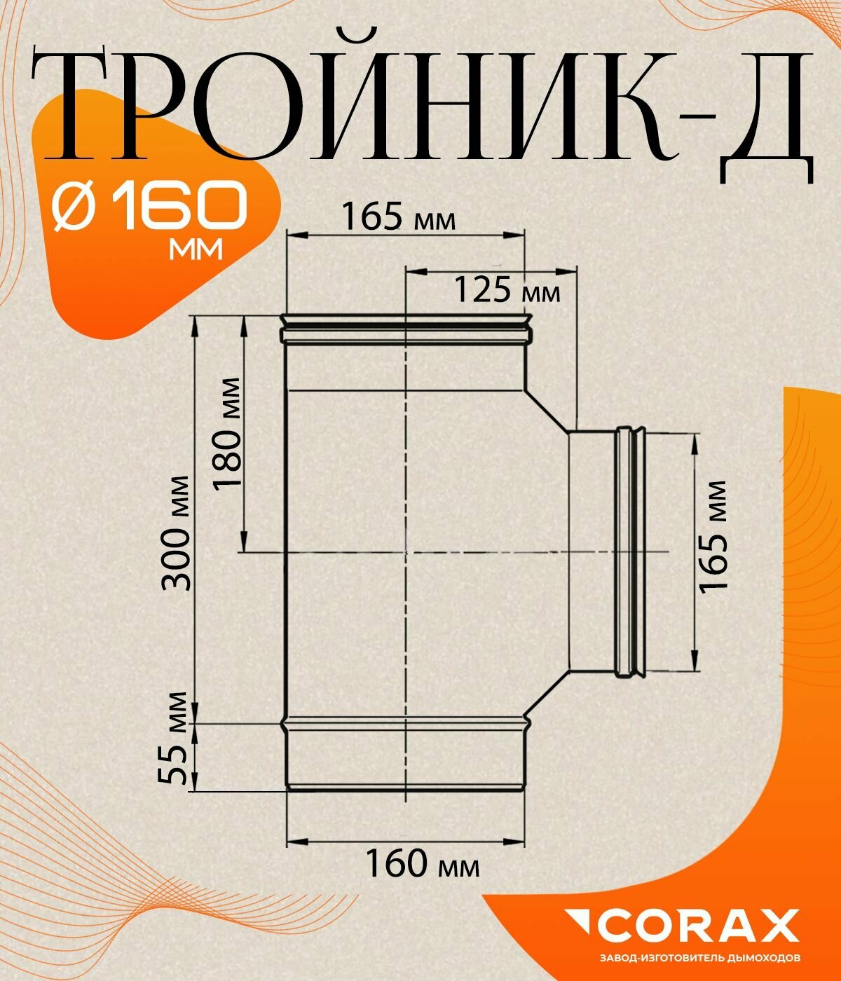 Тройник-Д 90* нержавеющий (430/0.5мм) Ф160 Corax: сравнение цен, характеристики, фото, актуальное наличие и цены.