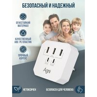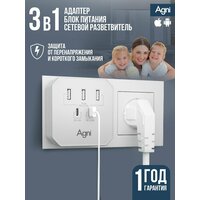 Купить Тройник для розетки, AGNI, 3 USB и 2 TYPE-C быстрая зарядка, сетевой разветвитель 45Вт, белый с доставкой по всей России.
