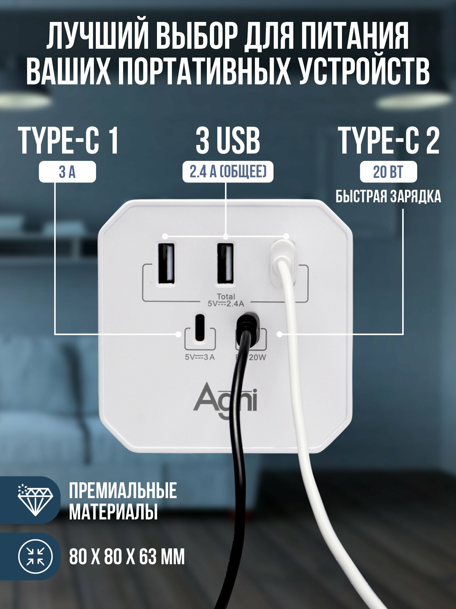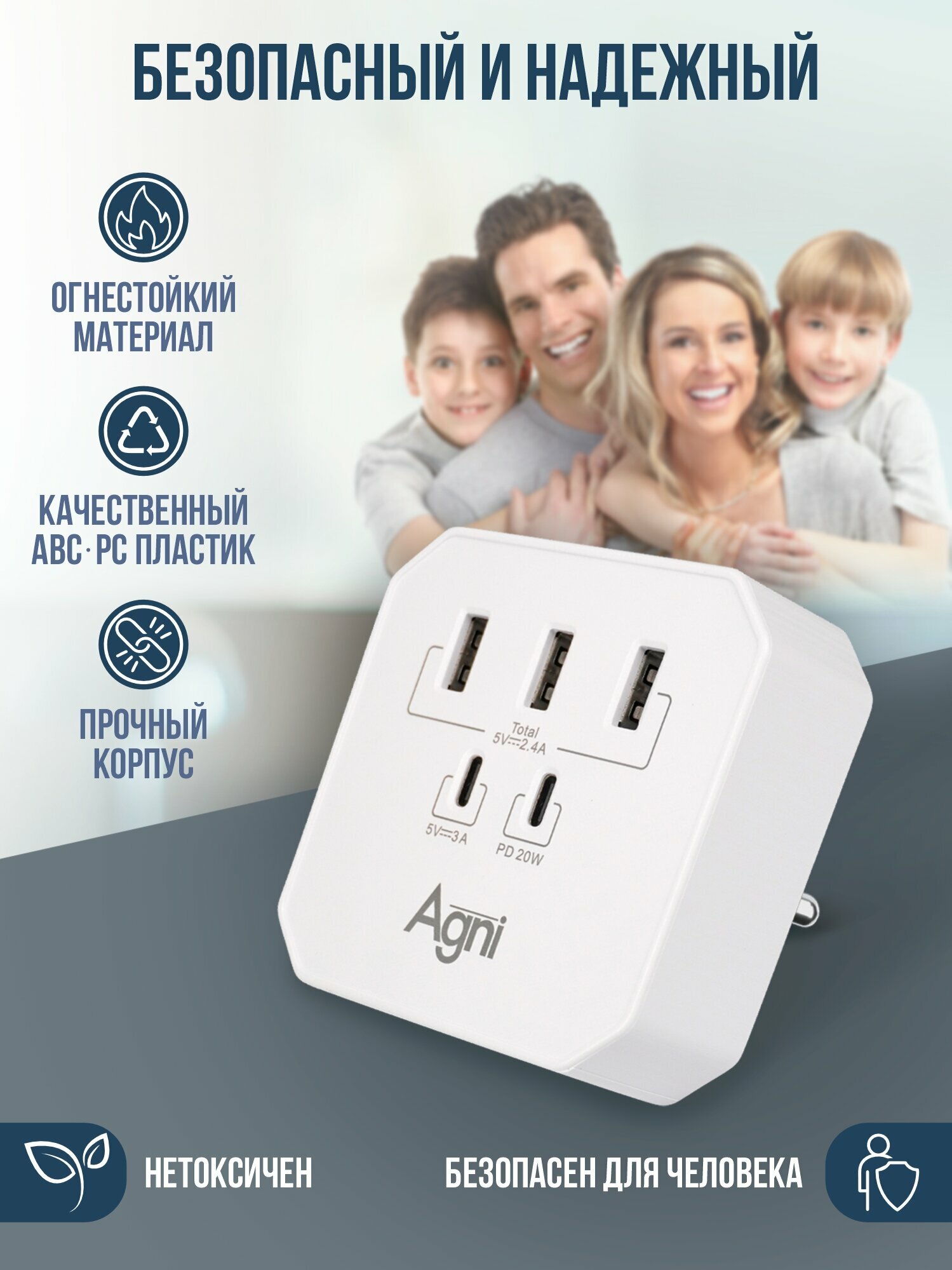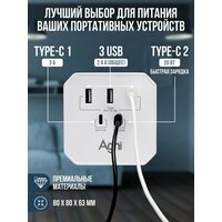 Тройник для розетки, AGNI, 3 USB и 2 TYPE-C быстрая зарядка, сетевой разветвитель 45Вт, белый: сравнение цен, характеристики, фото, актуальное наличие и цены.