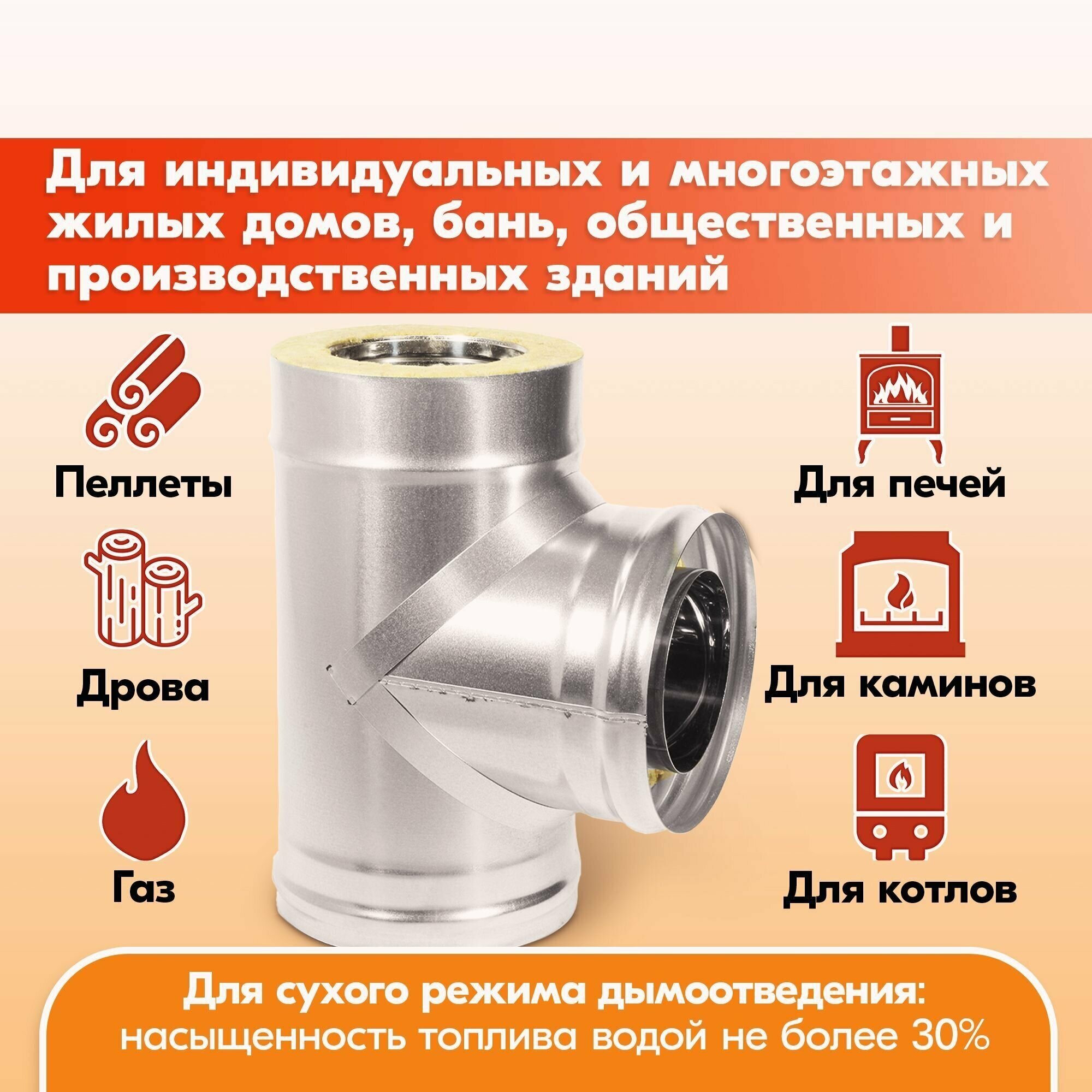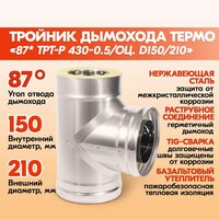 Тройник дымохода Термо 87 градусов ТРТ-Р 430-0.5/Оцинковка D150/210 двухконтурный с тепловой изоляцией, сэндвич тройник термо из нержавейки для дымохода: сравнение цен, характеристики, фото, актуальное наличие и цены.