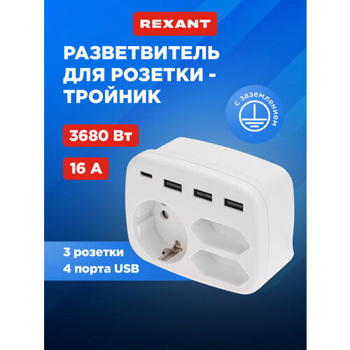Купить Тройник электрический 16А с/з + 2х2,5А + 3хUSB-A 2,4А + USB Type-C 3А, белый REXANT с доставкой по всей России. Тройник электрический 16А с/з + 2х2,5А + 3хUSB-A 2,4А + USB Type-C 3А, белый REXANT: сравнение цен, характеристики, фото, актуальное наличие и цены.