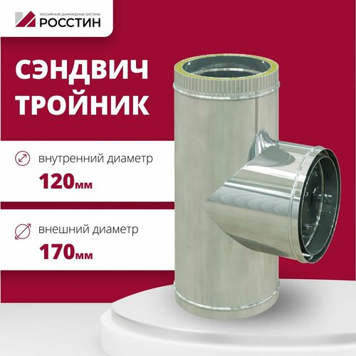 Купить Тройник сэндвич для дымохода, изолированный 90 градусов двухконтурный D120-170 из нержавеющей стали AISI 304-0,5/430-0,5 росстин с доставкой по всей России. Тройник сэндвич для дымохода, изолированный 90 градусов двухконтурный D120-170 из нержавеющей стали AISI 304-0,5/430-0,5 росстин: сравнение цен, характеристики, фото, актуальное наличие и цены.