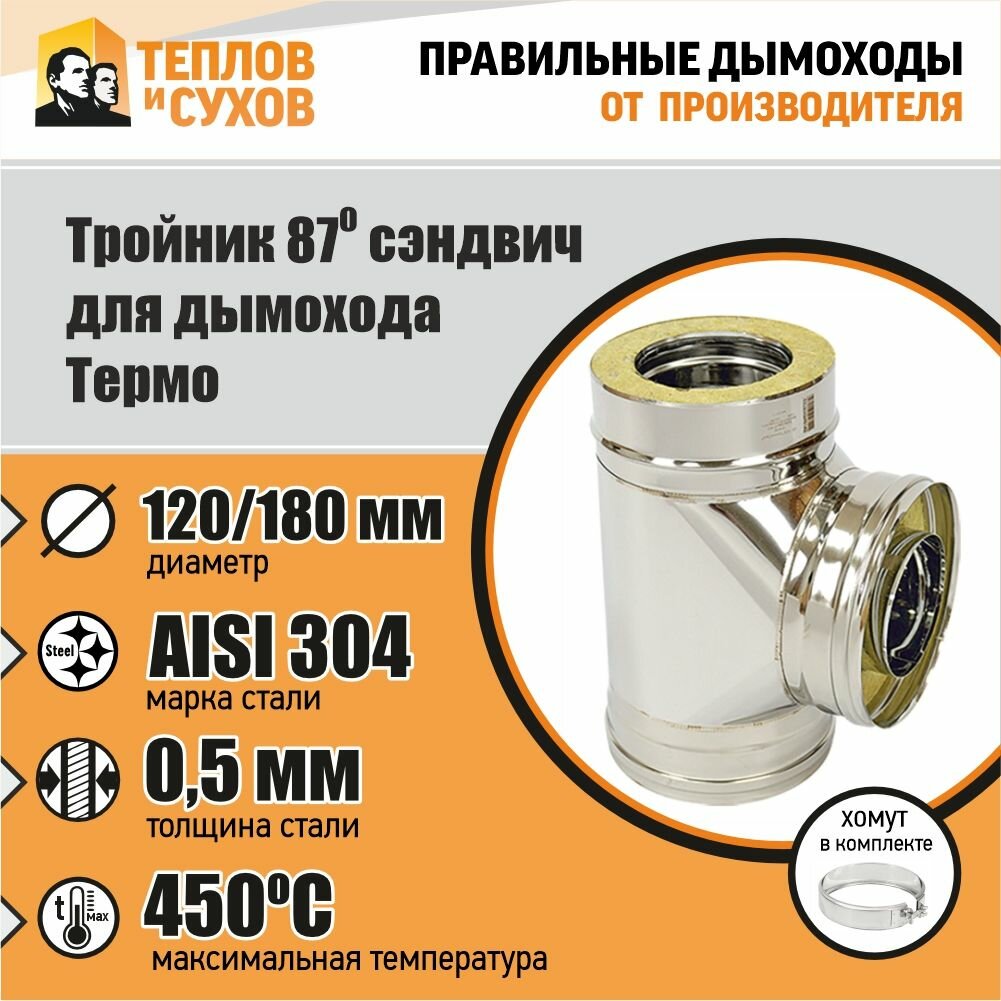 Купить Тройник Термо 87* ТРТ(М)-Р 304-0,5/304 D120/180 с хомутом с доставкой по всей России. Тройник Термо 87* ТРТ(М)-Р 304-0,5/304 D120/180 с хомутом: сравнение цен, характеристики, фото, актуальное наличие и цены.