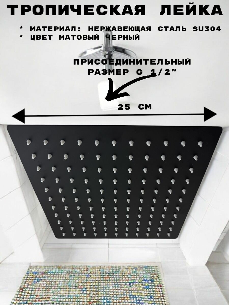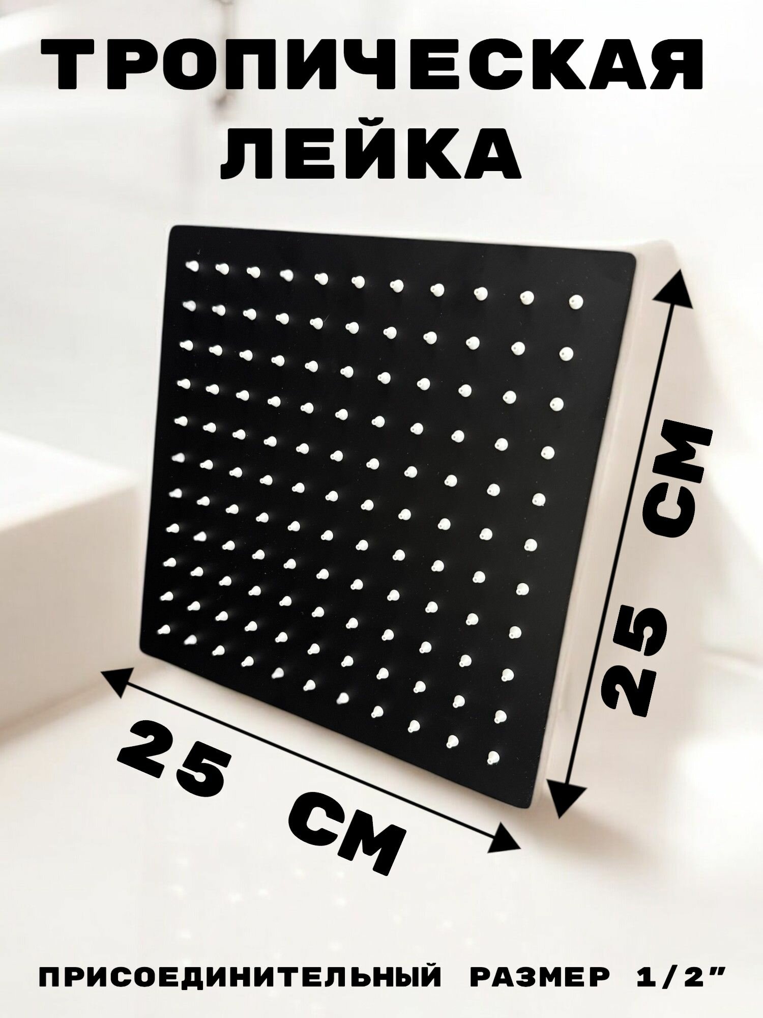Тропическая лейка для душа потолочная квадрат 25 см матовый черный, с шарниром для изменения угла наклона.: сравнение цен, характеристики, фото, актуальное наличие и цены.