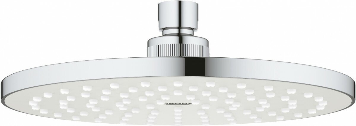 Цвет: хром, Стилистика дизайна: современный стиль, Форма: круглая, Материал: латунь, пластик, Диаметр верхнего душа, см: 20, Количество режимов струи: 1, Ширина, см: 20, Глубина, см: 20, Высота, см: 5.8, Область применения: бытовая, Встраиваемая система: нет, Поверхность: глянцевая, Стандарт подводки: 1/2", Система против известковых отложений: есть, Совместимость с проточ. водонагревателем: да, Хромотерапия: нет, Тропический (верхний) душ: есть, Подсветка: нет