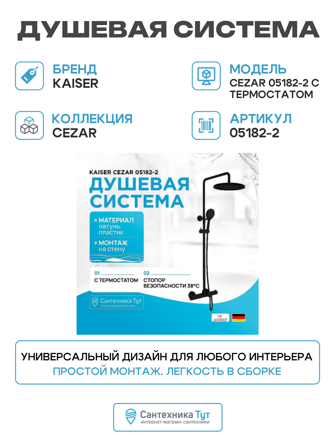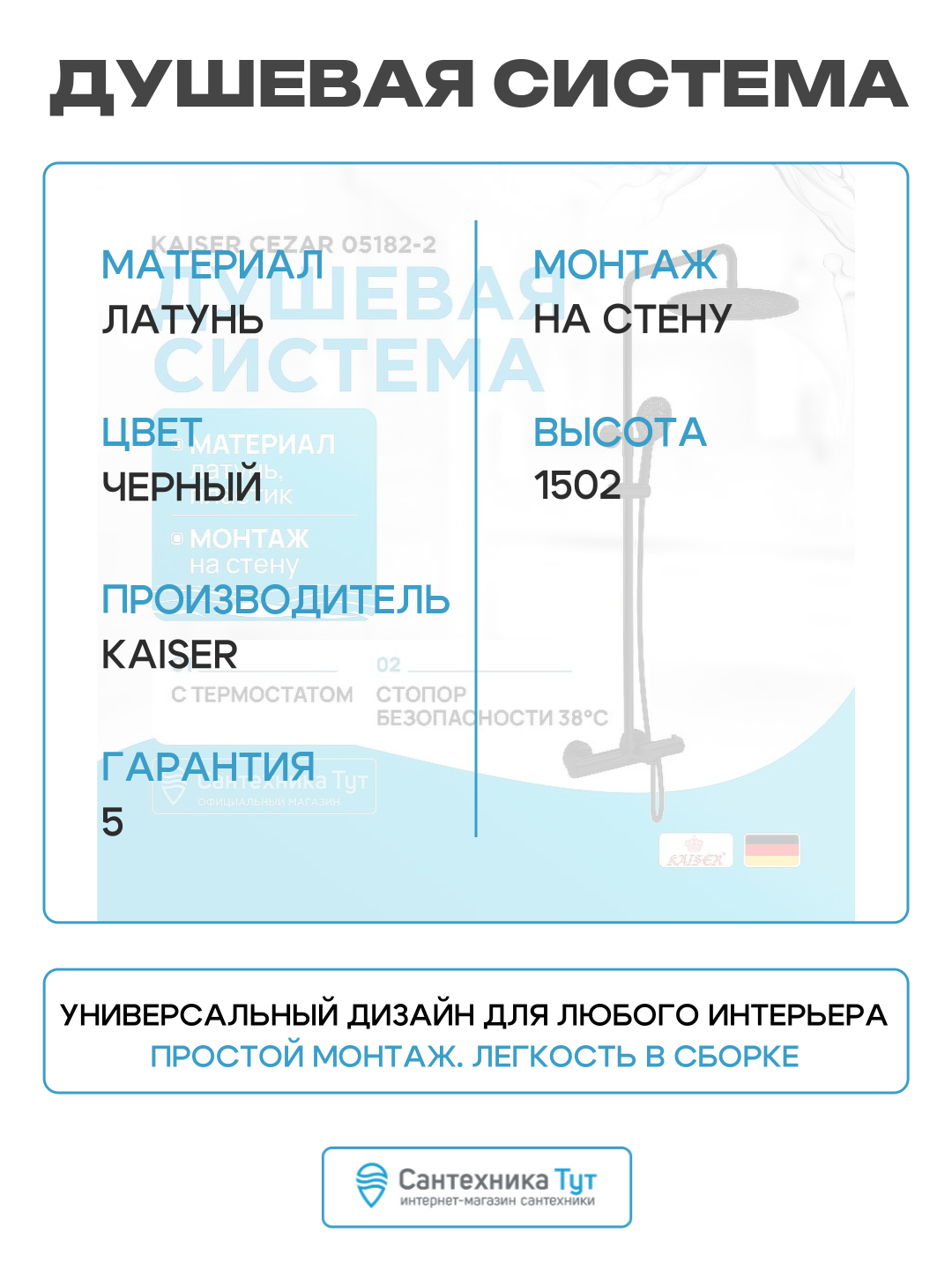 Купить Душевая система Kaiser Cezar 05182-2 с термостатом Черная матовая латунь на стену с изливом со смесителем с доставкой по всей России. Душевая система Kaiser Cezar 05182-2 с термостатом Черная матовая латунь на стену с изливом со смесителем: сравнение цен, характеристики, фото, актуальное наличие и цены.