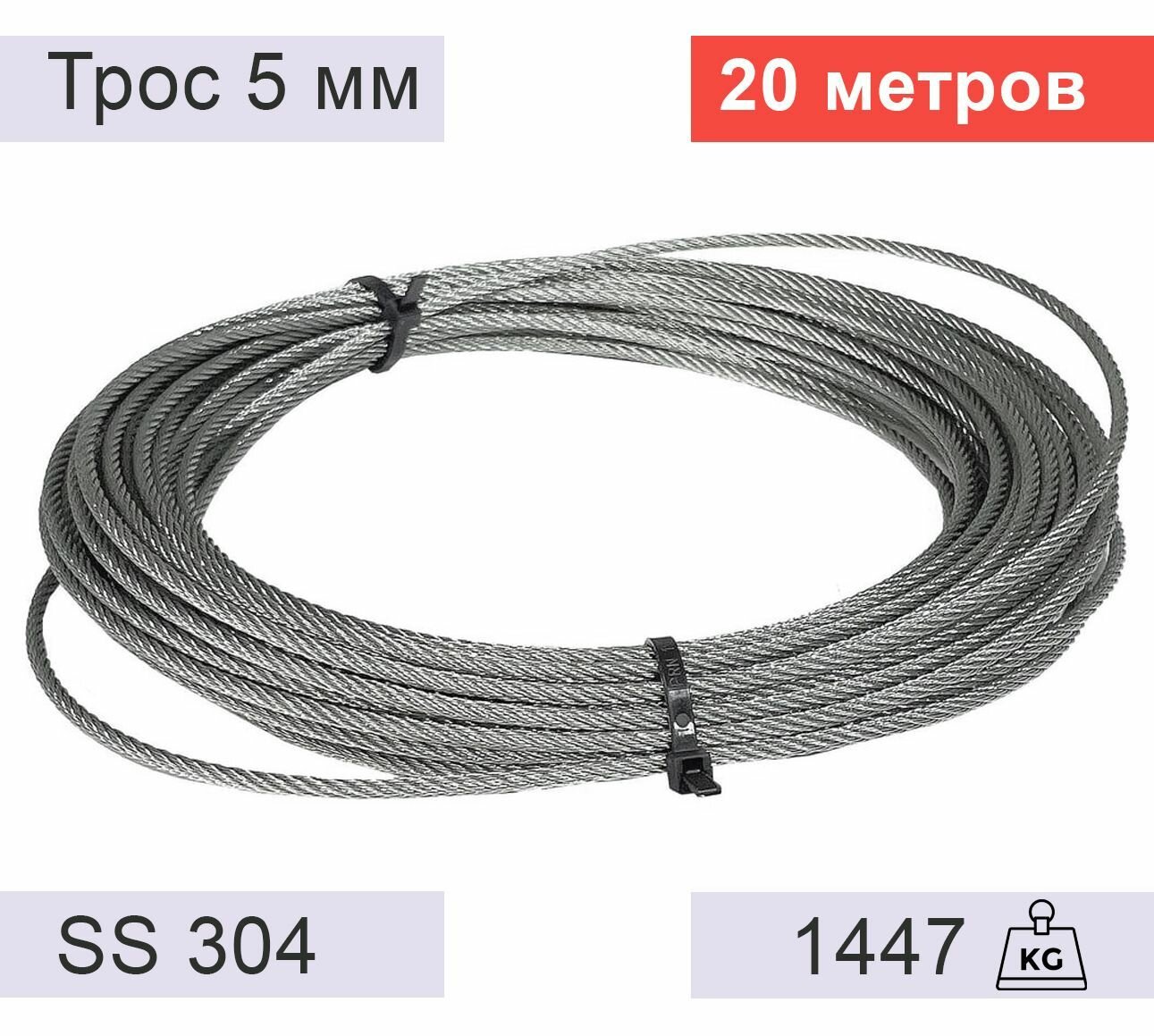 Трос 5 мм из нержавеющей стали — 20 метров: сравнение цен, характеристики, фото, актуальное наличие и цены.