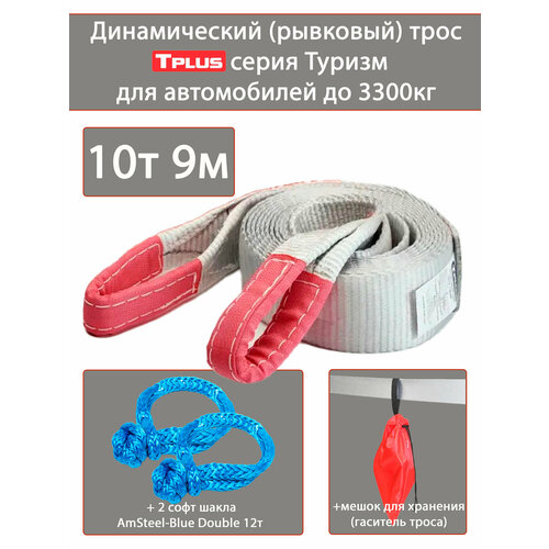 Трос динамический рывковый Tplus серия Туризм 10т 9м с софт шаклами AmsteelBlue Double 12т (2 шт.) и мешком для хранения: сравнение цен, характеристики, фото, актуальное наличие и цены.