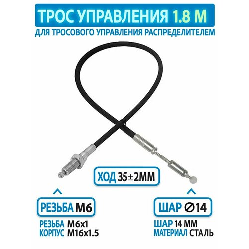 Трос управления 1,8 м, резьба/шар, используется для дистанционного управления гидрораспределителем, он имеет внешний гибкий и плотный кожух и внутренний кабель из прочного витого стального троса. Является качественным аналогом троса Indemar IB-431216/01,80 китайского производства.