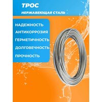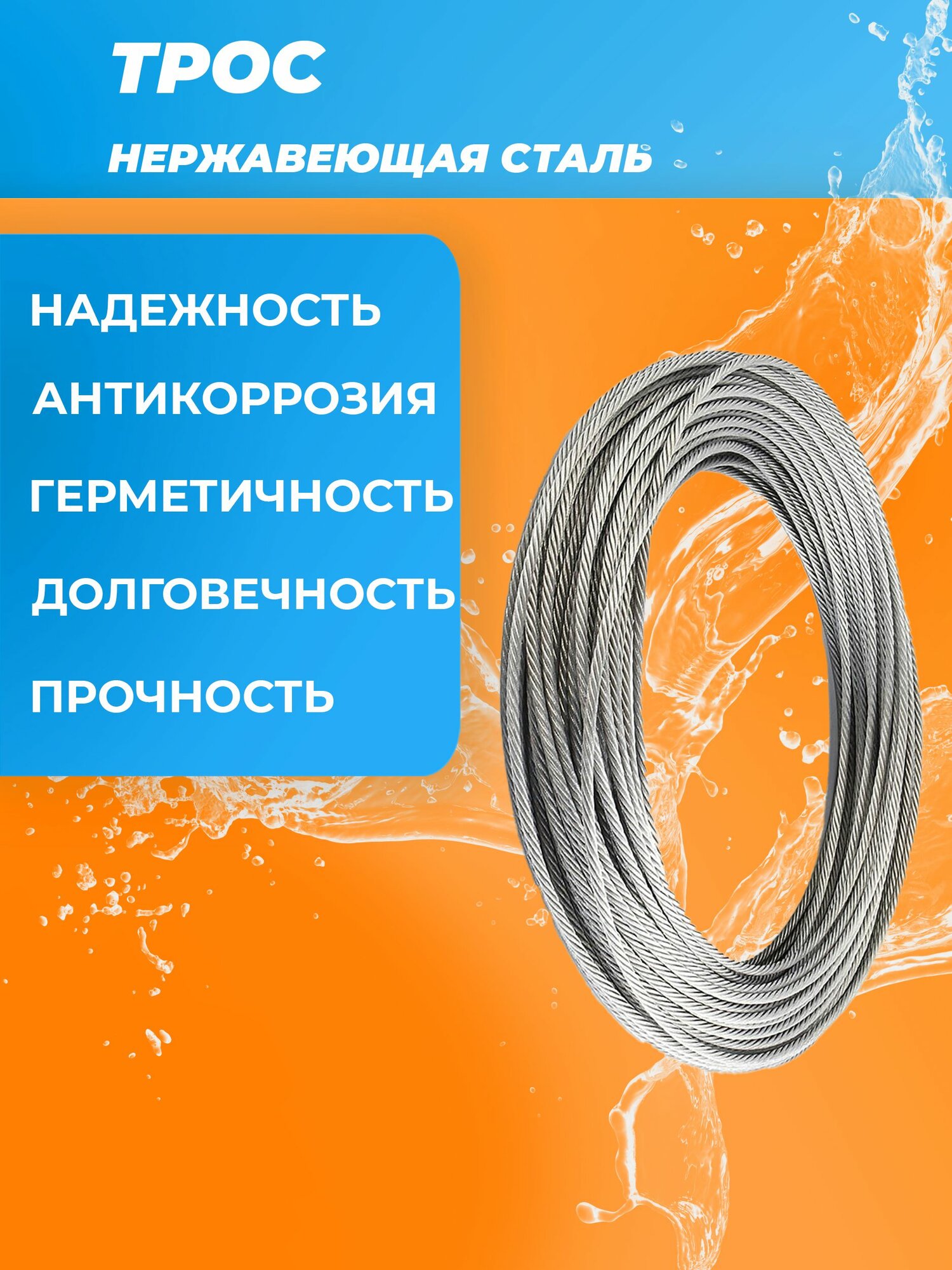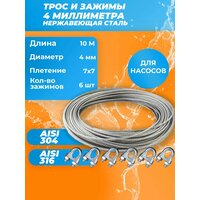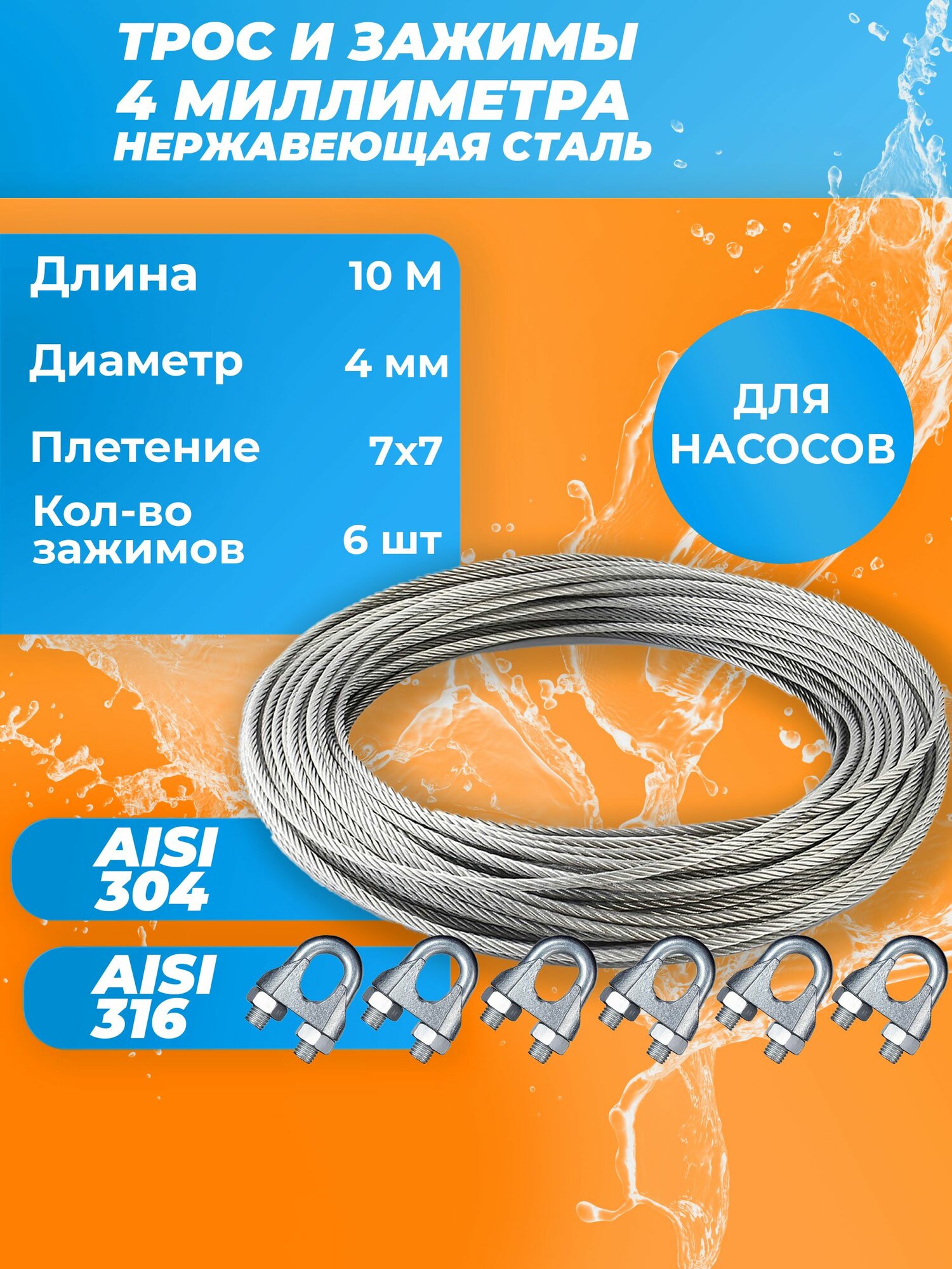 Трос из нержавеющей стали 7×7 AISI 304, 4мм бухта 10 метров + зажим 3-4 мм 6шт, трос нержавеющий для скважины: сравнение цен, характеристики, фото, актуальное наличие и цены.