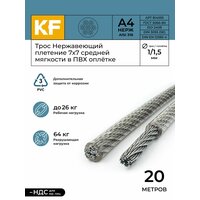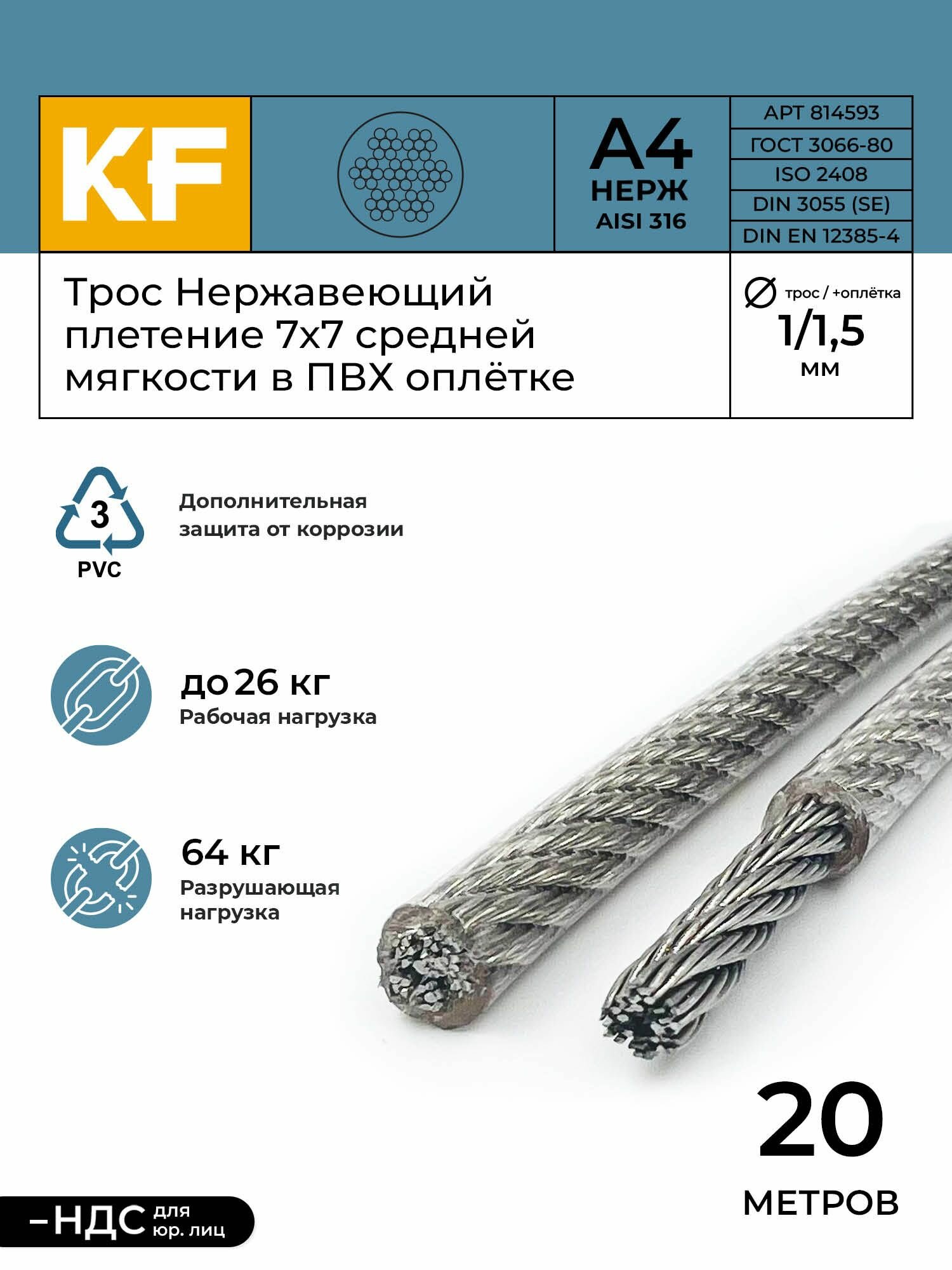 Трос нержавеющий 1,0/1,5 мм сталь А4 плетение 7х7 средней мягкости в ПВХ оплетке 20 метров: сравнение цен, характеристики, фото, актуальное наличие и цены.