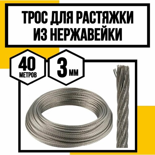 Трос нержавеющий 3 мм для растяжки 40 м АРТ 8379 А2: сравнение цен, характеристики, фото, актуальное наличие и цены.
