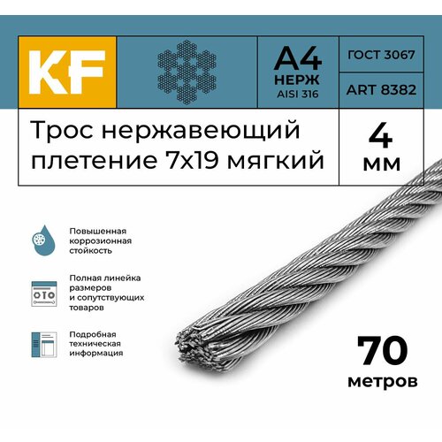 Трос нержавеющий 4 мм сталь А4 плетение 7х19 мягкий 70 метров: сравнение цен, характеристики, фото, актуальное наличие и цены.