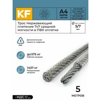 Трос нержавеющий KREPFIELD 5,0/7,0 мм сталь А4 плетение 7х7 средней мягкости в ПВХ оплетке 5 метров: сравнение цен, характеристики, фото, актуальное наличие и цены.