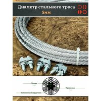 Трос стальной d5 с зажимами (4 шт.) ОЦ без оплетки, 50 м.: сравнение цен, характеристики, фото, актуальное наличие и цены.