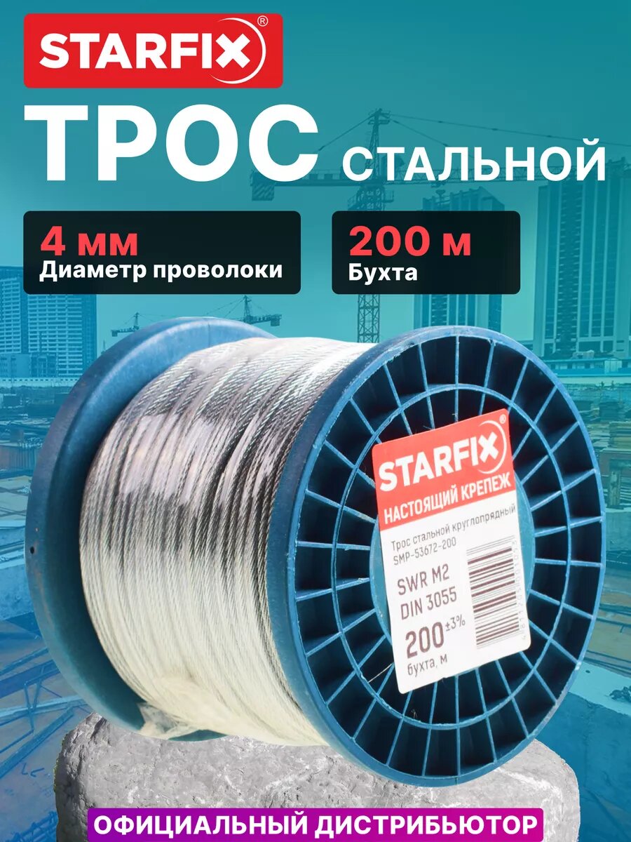 Купить Трос стальной М4 STARFIX SMP-53674-200 бухта 200 м с доставкой по всей России. Трос стальной М4 STARFIX SMP-53674-200 бухта 200 м: сравнение цен, характеристики, фото, актуальное наличие и цены.